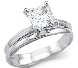 Get more detail about Solid 14k White Gold Princess Engagement Wedding Set CZ Cubic Zirconia Ring 1.5 ct.