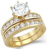 Lowest Price Solid 14k Yellow Gold Channel Engagement Wedding CZ Cubic Zirconia Ring Set Round Cut 2.5 ct