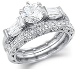 Solid 14k White Gold CZ Cubic Zirconia Engagement Ring Set w/ Eternity Band 2.5 ct Buy Now