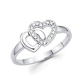 Discount 14k White Gold Two Heart Shape Love Diamond Ring .07 ct (G-H Color, SI2 Clarity)