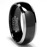 Discount 8MM Dome Two Tone Black Tungsten Ring Wedding Band Sizes 8 to 12